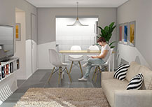 La obra está compuesta por departamentos de 1 y 2 dormitorios, 1 dormitorio Plus (con espacio extra), 1 duplex de 2 dormitorios en pisos 14 y 15, y cómodas cocheras.