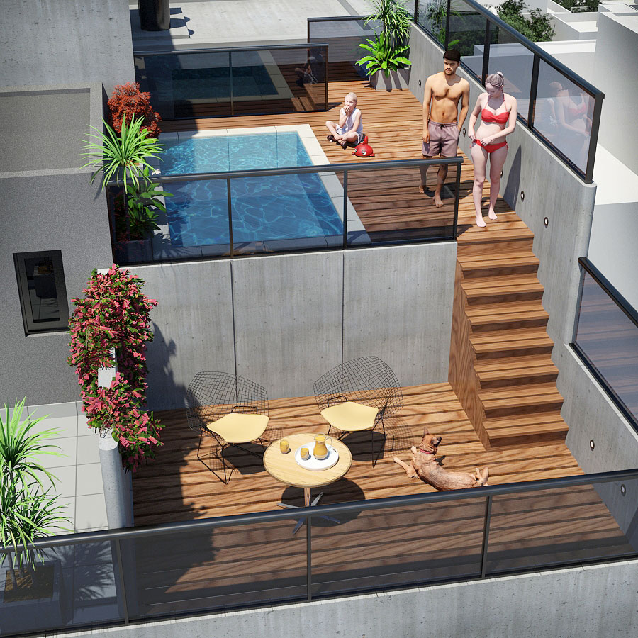 En el piso 15 encontramos un cómodo solarium con piscina, un quincho semicubierto con asador y excelentes vistas en altura hacia el frente y contrafrente.